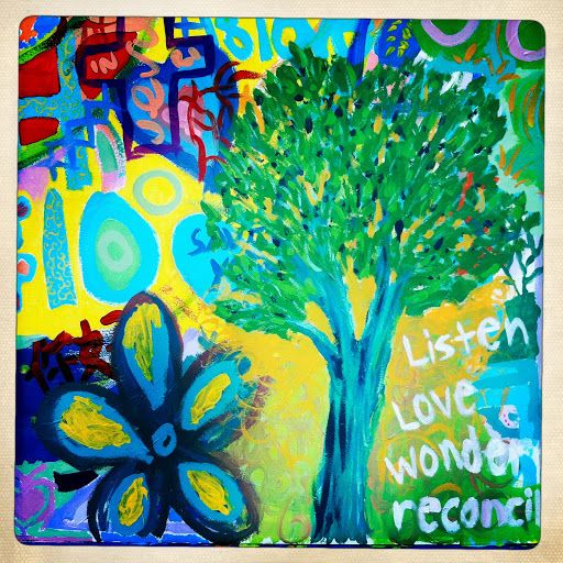 "Listen, Love, Wonder, Reconcile" (from a collaborative mural by Dmitri Kadiev created/displayed at Pittsburgh convention)